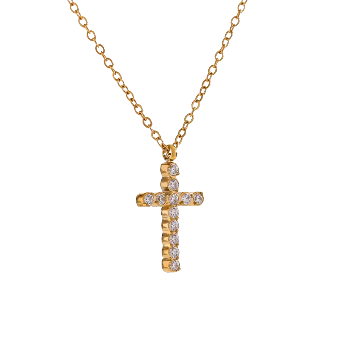 CROSS CIRCON GOLDEN ogrlica je elegantan i moderan komad nakita koji spaja minimalizam i simboliku krsta. Izrađena od visokokvalitetnog nerđajućeg čelika sa luksuznom pozlatom, ova ogrlica je savršen izbor za svakodnevno nošenje, ali i za posebne prilike.