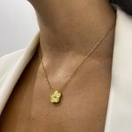 GOLDEN FLOWER ogrlica odiše nežnom elegancijom i bezvremenskim šarmom. Suptilni privezak u obliku cveta u središtu ogrlice simbolizuje lepotu i ženstvenost, čineći ovaj komad savršenim izborom za svakodnevno nošenje, ali i posebne prilike.
