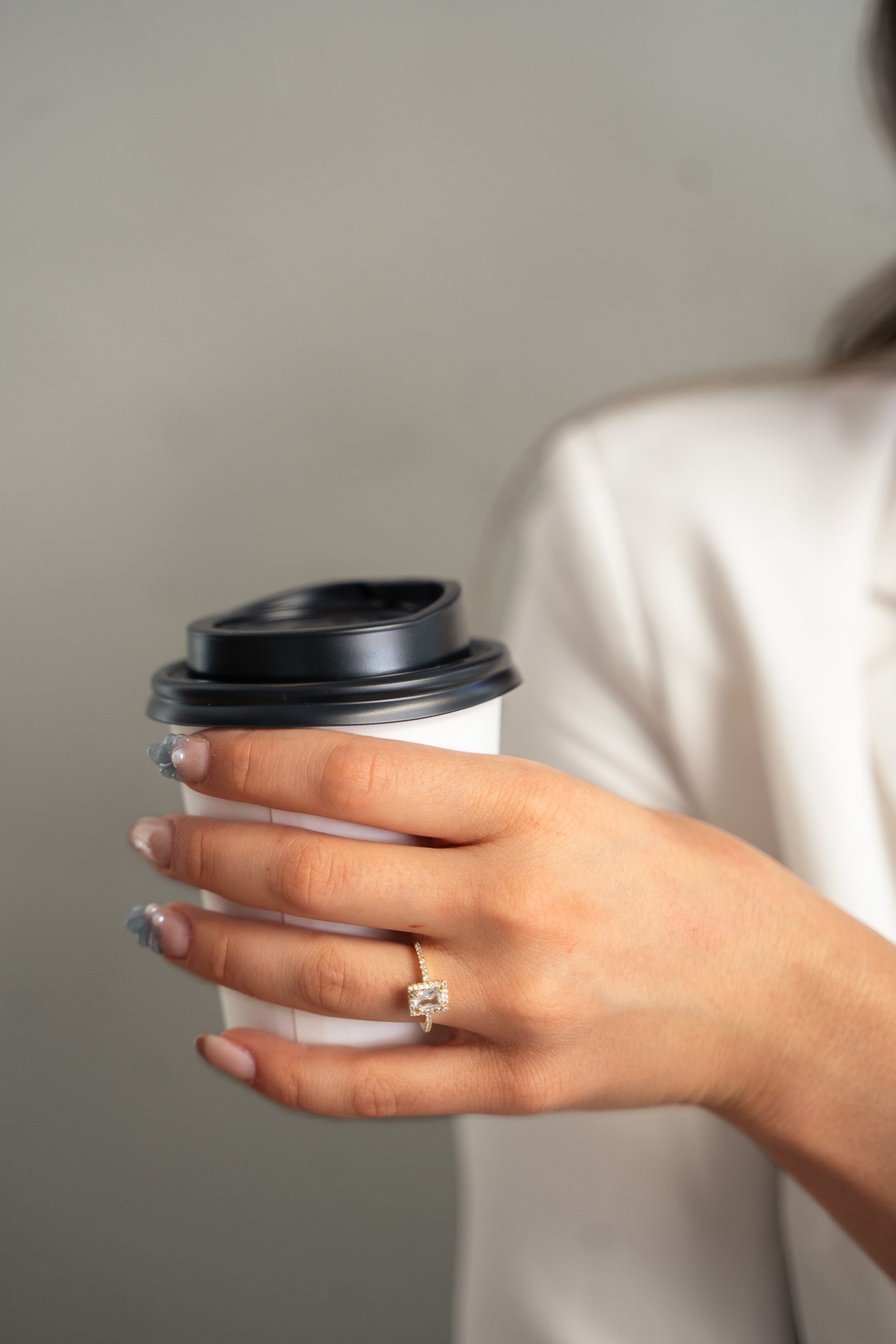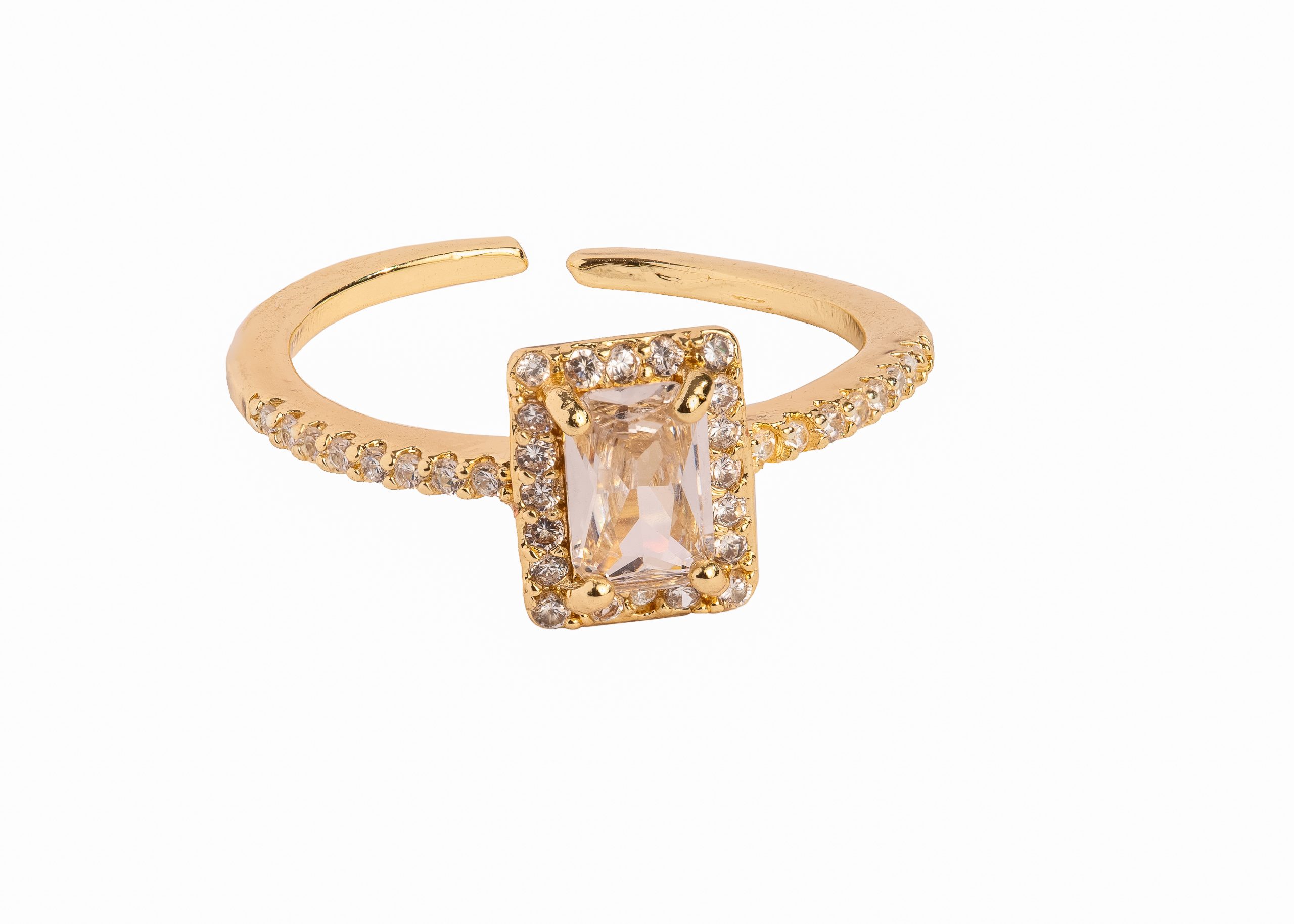 Elegantni Diamond Golden prsten savršena je kombinacija sofisticiranosti i praktičnosti. Ovaj prsten zlatne boje izrađen je s podesivim dizajnom, prilagodljiv različitim veličinama prstiju, čime se osigurava udobnost i lakoća nošenja. Njegov centralni detalj je veliki, pravougaoni cirkon koji odiše luksuzom i privlači pažnju svojom blistavošću. Idealan za svečane prilike, ali i kao upečatljiv dodatak svakodnevnom stilu, ovaj prsten predstavlja bezvremenski komad nakita koji će svaki outfit podići na viši nivo.