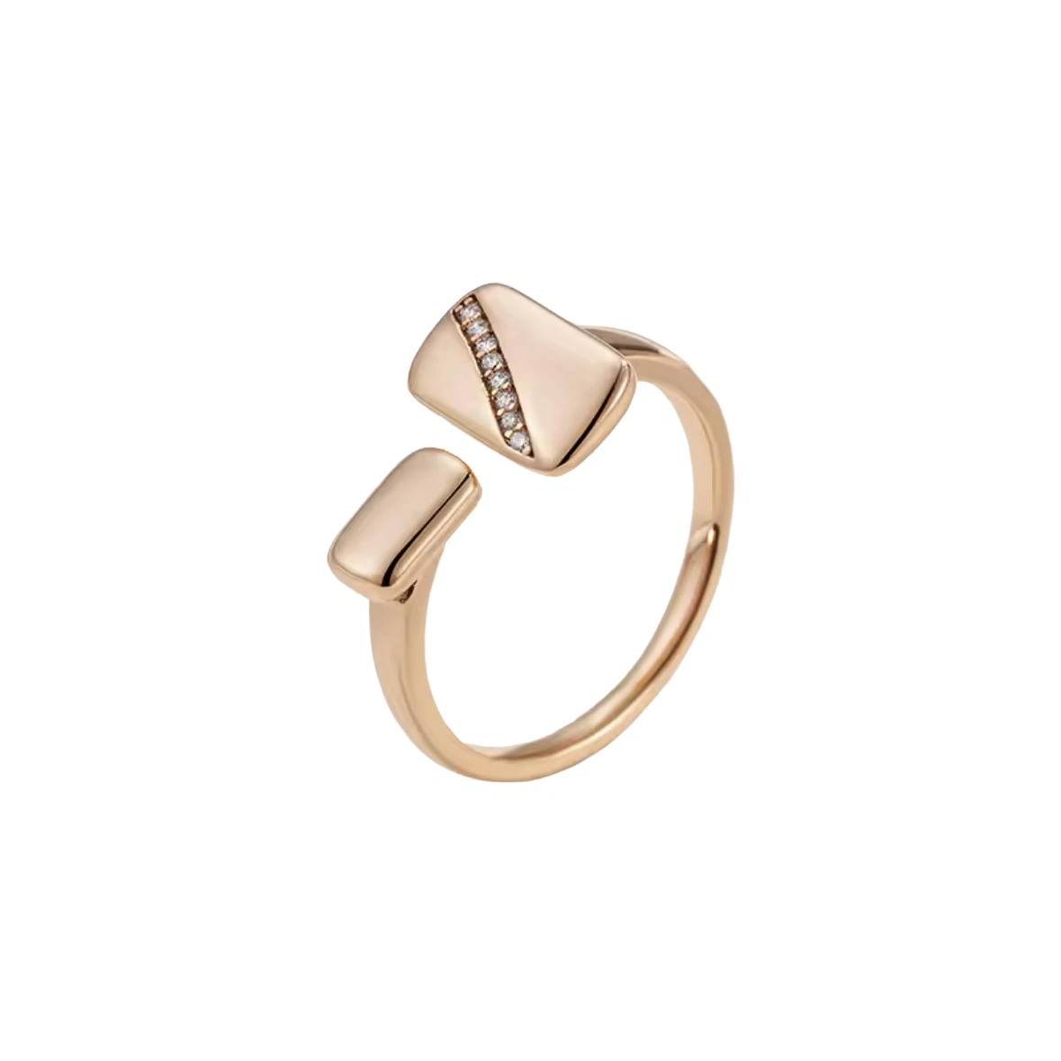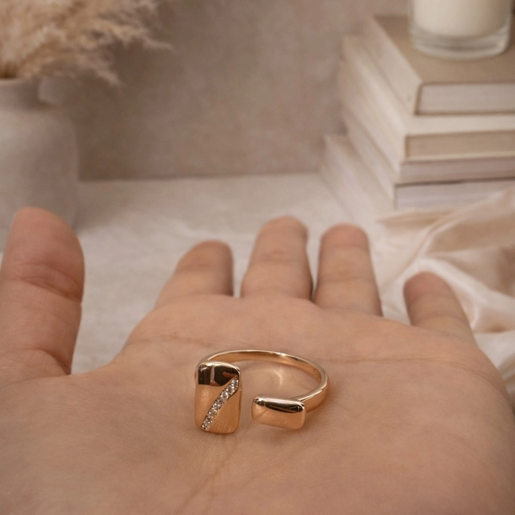 Moderan prsten OPEN RING ROSE GOLD izrađen sa kvalitetnom 585 rose gold pozlatom koja daje topao, luksuzan sjaj. Prsten je podesive veličine pa se lako prilagođava svim prstima, što ga čini praktičnim i udobnim za nošenje svakog dana.