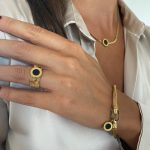Set se sastoji od ogrlice, narukvice, prstena i minđuša – savršen izbor za dame koje žele upečatljiv, ali istovremeno suptilan aksesoar.